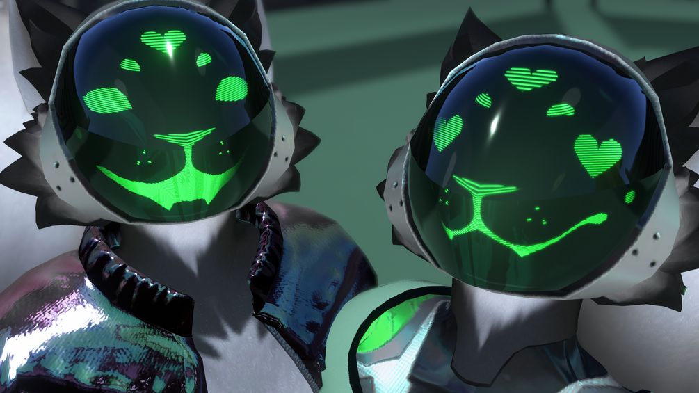 - 4 Gesture Expressions - Mapped to the left hand, custom SFX included for gestures with visor toggled.